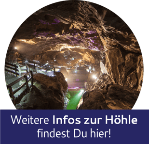 In dem für Besucher erschlossenen Schauhöhlenteil wandern Sie auf schönen und bequem begehbaren Steiganlagen rund 700 Meter in den Berg hinein und überwinden bis zur geräumigen Plattform, von der